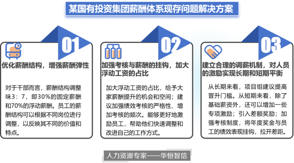在对该集团薪酬管理方面现存问题有了初步了解后,华恒智信的专家老师们进行了多次讨论,最终确定了以下解决方案: