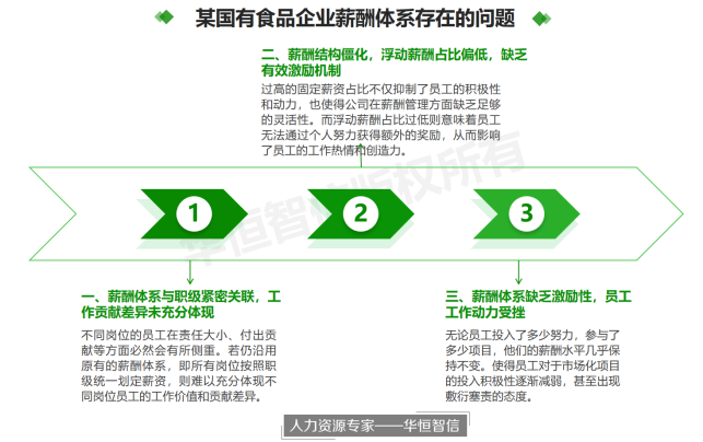 华恒智信项目组专家老师抵达项目现场后,对公司开展了多次调研与访谈工作,通过对调研结果及数据的分析,项目组发现目前该公司在薪酬体系方面主要有以下几个问题。