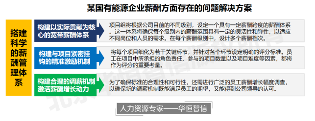 针对当前该公司根据职级定薪,没有突出岗位价值、人员能力,忽视了员工实际贡献的问题,华恒智信提出,建立以实际贡献为核心的宽带薪酬体系。