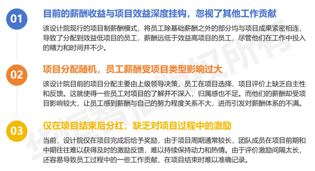 在双方经过前期磋商达成合作后,华恒智信项目组前往该设计院,深入各个部门及层级进行调研,对历史数据进行分析,并对其薪酬体系现状进行了调研,发现主要存在以下问题: