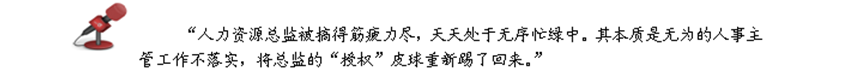 该公司的人力资源总监本应该制定公司的人力资源管理战略,为公司的整体发展和业务领域的发展提供人力资源支持,现实却被困在基本的人事绩效考核事务中;反之,人事专员作为一线管理人员,不但不落实上级的工作部署,还一味抱怨工作难以开展的困难。如此一来,人力资源总监被人事专员“反授权”,陷入了基础工作无法落实,基础的工作被基层管理人员反授权给最高层管理者,使其难以脱身去规划公司总体人力资源管理战略。