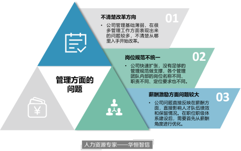很多企业在快速发展过程中,对管理不重视,或者还没有建立规范基础就快速发展业务,很容易给企业带来隐患。当回头再调整的时候,由于很多事情已经落地、成为惯例,再调整所需的难度很大。在华恒智信人力资源咨询团队的长期咨询工作中发现,对这样的问题,要审时度势,采取不同的改革方式,对于基础性的定岗定编、工作分析、职位职级体系,可以快速建立推广,对于薪酬、任职资格、培训体系等工作,则需要循序渐进,逐步完善优化。在本次职位职级体系建设项目中,项目组通过调研发现,职位职级体系仅仅是基础的管理规范的第一步,在管理完善方面还有很多工作需要开展,通过管理诊断和未来改善规划,可以有效支持企业长期发展。