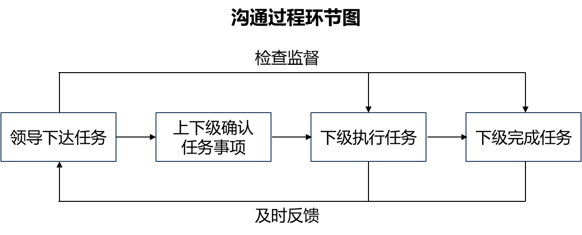 综上所述,在整个工作过程中,沟通是至关重要的,但沟通也需要沟通到点子上,即把控好关键点,什么时候应该沟通哪些内容,要有所明确,保证沟通流程的正确(详见沟通过程环节图),这样才可以收到良好的效果。所以,要想提高沟通的绩效,需要加强沟通的确认环节与及时反馈环节,将沟通工作真正做到位,从而保证上级领导意图与下级理解相匹配,促使工作按预期效果完成。