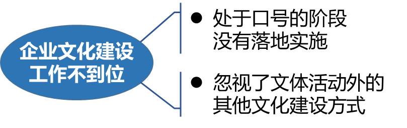 通过对该企业相关部门领导以及员工的沟通,华恒智信顾问专家对企业存在的问题有了深层次的了解,专家指出,企业出现当前问题的主要原因是企业文化建设工作不到位。一方面,文化建设目前仍然处于口号的阶段,有名无实,没有落地实施;另一方面,企业文化建设浅化,将企业文化建设等同于举办文体活动,忽视了其他文化建设的方式,导致文化建议难以取得理想效果。