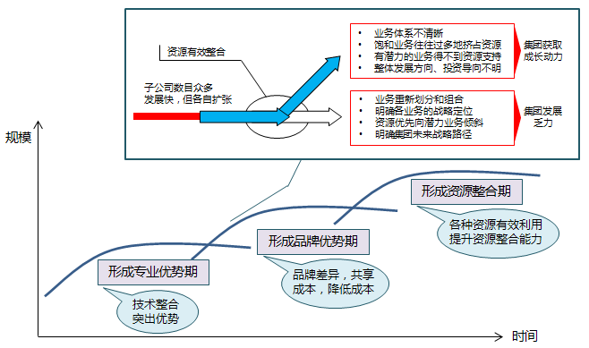 就目前状况而言,华恒智信顾问初步分析:对于公司各个部门,总部(总经理及职能团队)目前所扮演的是“财务控制型”角色,并没有充分发挥其巨大的协同效应。要解决这一问题,需要提升总部(总经理及职能团队)资源整合能力,建设沟通机制,实现内外资源整合与联合重组,使协同效应产生利润源。