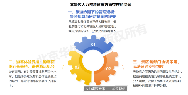 位于南方的某5A级景区,以其独特的自然风光和深厚的文化底蕴,不仅在国内享有盛名,更是被世界文化遗产名录所收录。每年,无数游客慕名而来,希望能一睹其风采。然而,与众多知名景区相似,每当节假日临近,这片美景便会被数以万计的游客所包围,形成一道独特的风景线——人潮如织、摩肩接踵。这种盛况虽然为景区带来了源源不断的生机与活力,但同时也给景区工作人员带来了前所未有的挑战和压力。尽管景区方面已经提前做好了充分的准备,如增加服务人员数量、提前对服务人员进行培训等,但是面对庞大的游客数量,工作人员的服务效率显得捉襟见肘,仍然会出现服务不到位、游客抱怨排队时间长、景区拥挤、游客投诉等问题。此外,面对不同客流量的变化,景区各部门之间的协调也显得尤为不足。这些情况成为了摆在景区管理者面前的问题,为了解决景区当前的困境,景区领导层经过深思熟虑,决定寻求业内领先的人力资源专家——华恒智信的帮助。希望借助一专业第三方的智慧和经验,对景区内部管理进行深度改革和优化。通过科学的协调,实现景区的高效管理,为游客带来更加优质的旅游体验。