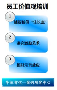 在本案例中,提出了要实现培训的有效性,除了进行岗位技能培训外,还需要对员工进行价值观的培训,即将企业文化渗透入员工的观念中,使内部凝聚力得到增强。对此,华恒智信专家认为,企业在树立企业文化的过程中,宜放宽思路,采取多渠道进行,更快更好的改进员工精神风貌,增强员工的忠诚度。在对员工进行价值观培训的基础上,可以辅以如下措施: