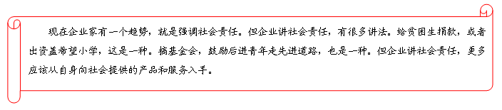 答案是,做企业如同做人。聚敛小财靠智,聚敛大财要靠德。而德行的积累,又不是企业领导在台上耍嘴皮子练出来,而是靠企业在经营当中落实到每一个行为细节的。这最终体现为企业的素质。