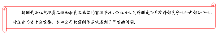 案例中本田公司遇到的问题值得大部分外资企业深思。薪酬并不是激励员工的唯一方式,也不是激励员工的长远方式,但这并不意味着企业可以不重视薪酬制度的建设。不合理的薪酬体系会影响企业的发展。