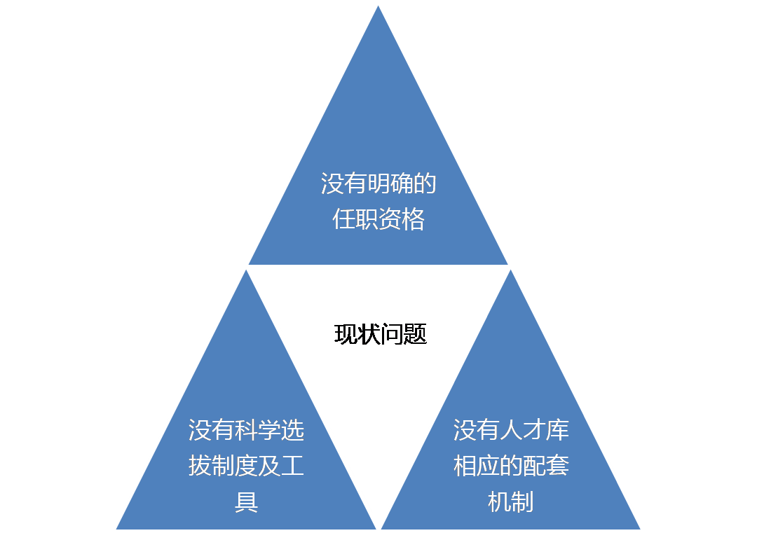 设计院目前处于转型期间,对于项目管理、市场营销等类型的专业人才的需求日益加大,而公司没有一个良好的人才储备机制,造成了公司虽然人员基数大但是却无人可用的尴尬局面。经过调研发现,目前的项目经理、营销人才大多是领导凭感觉选出来的,所以这些“人才”在专业知识方面和软实力方面还有一定的欠缺。项目组老师通过对设计院的走访沟通、调研分析,发现目前存在的三个主要问题: