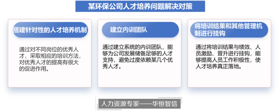 要想在日益激烈的市场竞争中始终保持竞争力,对核心人才的培养尤为关键。在本案例中,由于该公司把“人才”看作“人力”,进行无差别管理,在发展过程中,逐渐暴露出一些问题,比如,人才培养基础薄弱,没有针对性的培养方案;优秀的经验和专业知识没有在组织内部实现共享,对个别骨干依赖性强;培养体系与现实脱节,没有和其他管理机制有效结合。针对这些问题,华恒智信建议针对不同核心岗位的人才,采取不同的培养计划;建立内训团队,实现知识和资源的共享,并对培训讲师团队进行规范化管理;将培训结果和其他管理机制进行结合,形成合力,保障人才培养工作顺利落地。