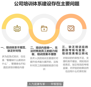 通过深入地访谈和分析,在深入了解该公司实际管理情况的基础上,华恒智信顾问专家团队指出,该公司的员工培训体系存在以下几个方面的问题: