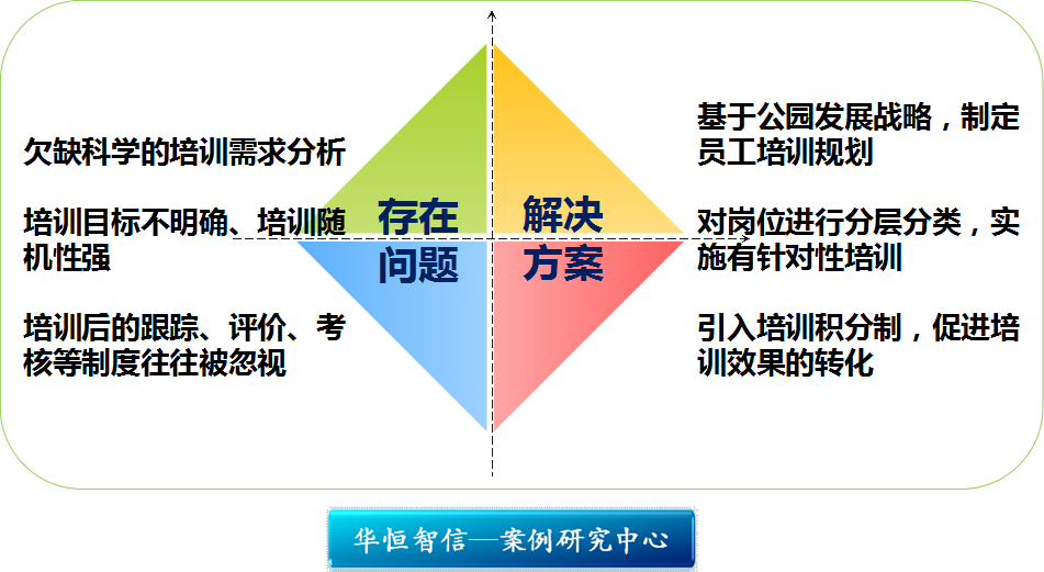 通过对该公园实际管理情况和员工培训体系现状的深入了解,华恒智信顾问专家分析指出,该公园的员工培训体系主要存在以下几个方面的问题: