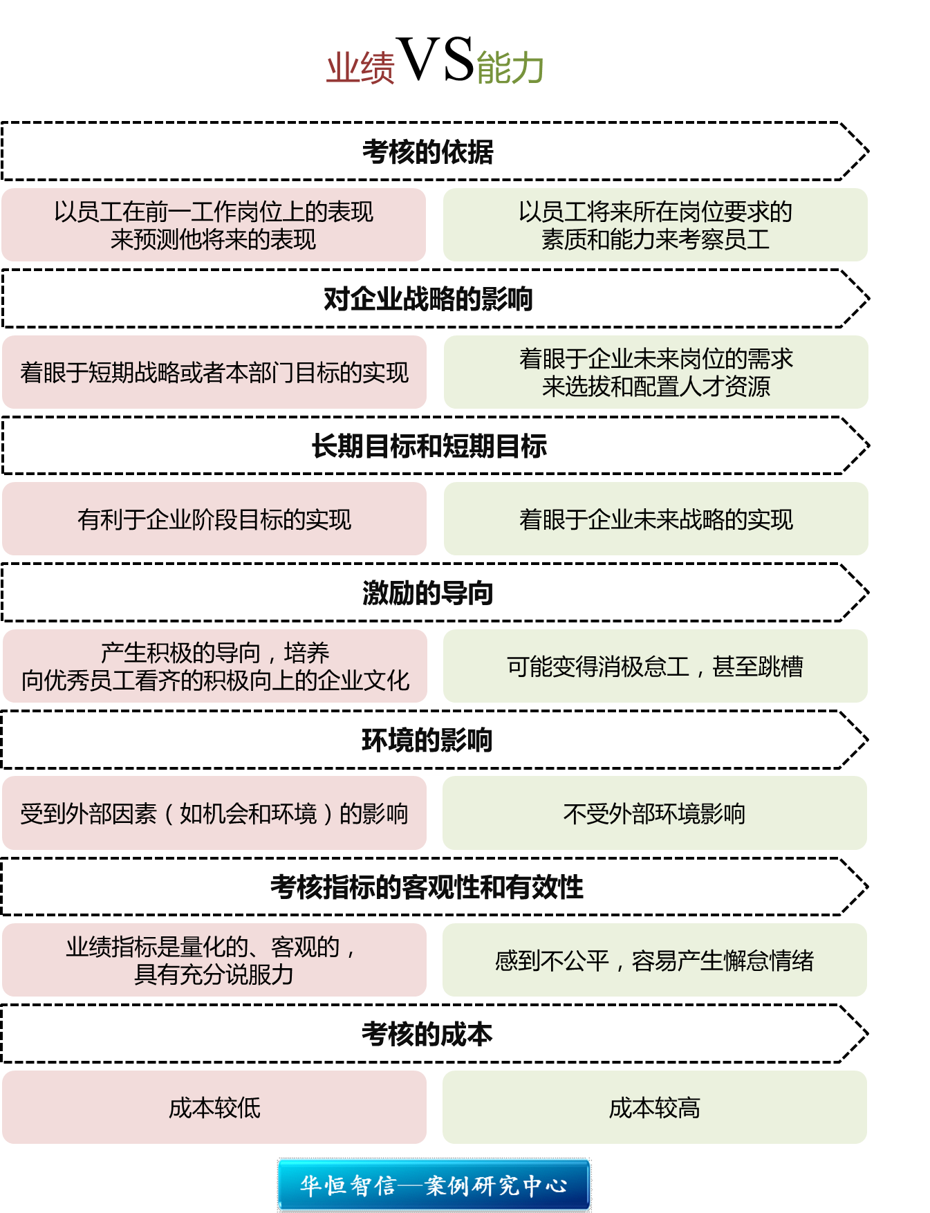 业绩指标是量化的、客观的,具有充分说服力,一般也是企业和员工最为关注的。能力却是抽象的,虽然目前能力测评的客观性已经得到较大的提高,但仍无法从本质上消除主观性的影响。