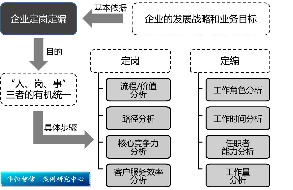 第三,企业定岗的具体步骤分为流程/价值分析、路径分析、核心竞争力分析和客户服务效率分析,而定编的具体步骤分为工作角色分析、工作时间分析、任职者能力分析和工作量分析。这些步骤的实施皆是根据岗位设置的要求结合实际情况进行的,需要每个企业根据自身情况私人定制,切不可盲目照搬其他企业的成功案例。