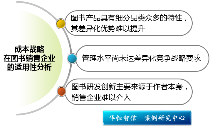 其次,在研究开发活动方面,追求价格和成本竞争的公司依赖于已建立的常规性技术,而追求差异化竞争的企业在这方面需要更多投入,才能形成产品差异的创新核心。图书的创新性主要来自作者本身,而非销售企业,所以仅仅作为图书销售的企业很难寻求根本上的创新和差异化竞争,选择价格和成本竞争也就成为其发展路径上的必经之路。