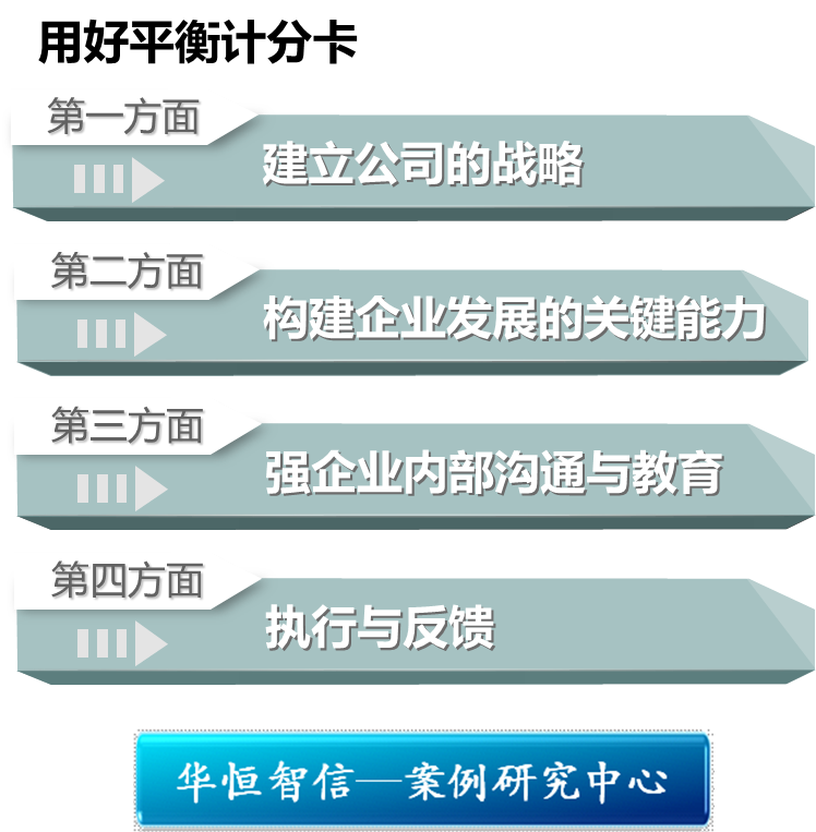 上述案例就是一个明显的水土不服的例子,将国外的先进工具直接拿过来用,并没有结合国情与企业的实际情况,往往是会出现问题的。因而,华恒智信专家指出,要使用好平衡计分卡,需要注意以下方面: