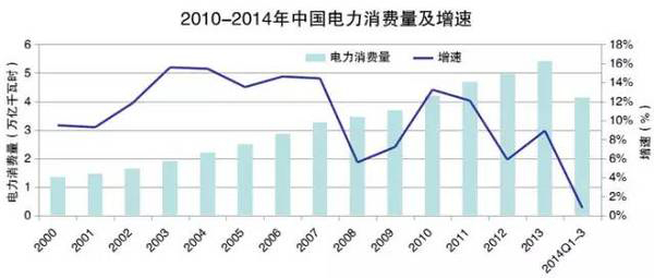 2014年全社会用电量5.52万亿千瓦时,同比增长3.8%;全国发电设备平均利用小时也降至1978年来的历史最低水平。2015年前三季度累计增速仅为0.8%。
