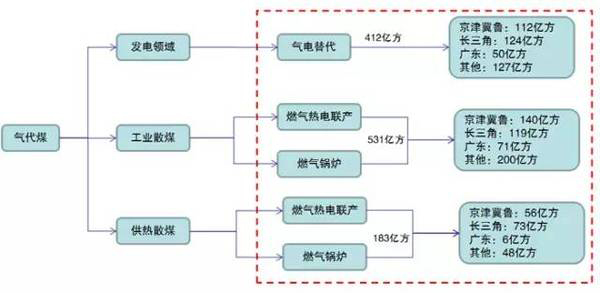 中国天然气替代煤炭的市场空间