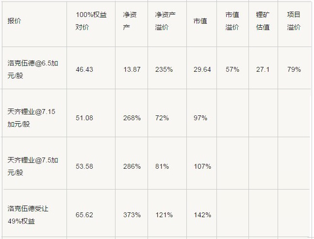 从洛克伍德最先报价,到天齐锂业两次加价,到最后洛克伍德再次报价,净资产溢价从235%涨到373%。两家不惜代价的争夺近乎疯狂,遭到不少投资者质疑,但并购的收益与效果立竿见影,一年后即证明了两家的“锂”性,并购合情合理、标的物有所值。