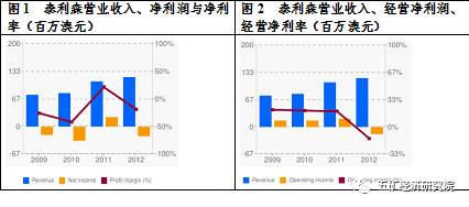 公司层面,泰利森虽然拥有优质的资源,但经营状况并不理想,2009-2012年营业收入保持增长,但净利润仅2011年为正。2012年减值准备高达4,814.4万澳元,对公司造成较大影响,公司经营不善是董事会决定出售泰利森的重要原因之一。