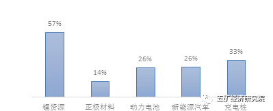 “锂资源-正极材料-动力电池-新能源汽车”产业链当前呈现“微笑曲线”特性,资源端凭借进入壁垒,市场端凭借巨大需求位于曲线的两端高点,主导作用明显。