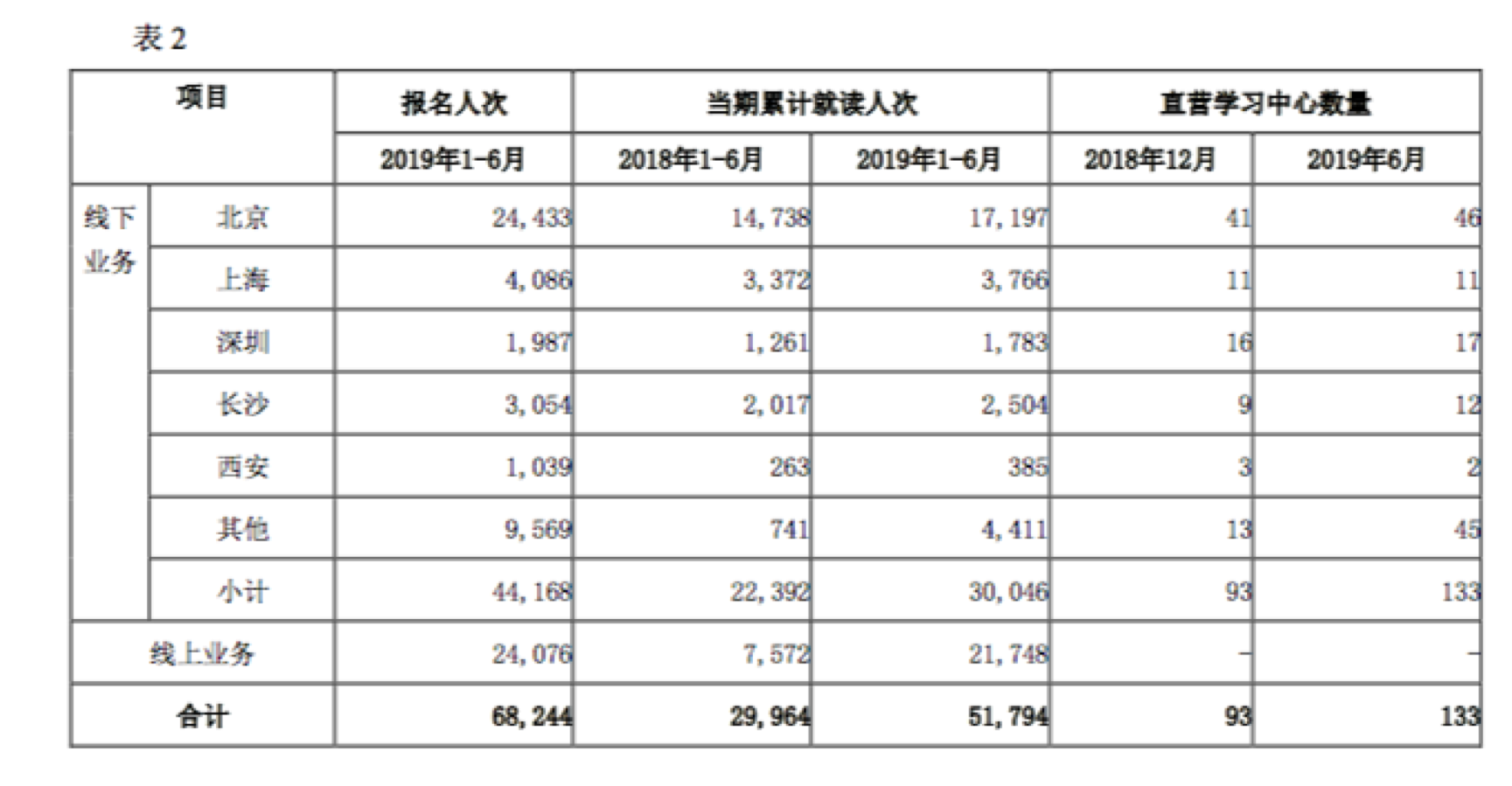 在大语文学习服务上,报告期内业务现金收款 2.3亿元,比上年同期增长 98.12%;确认收入1.4亿 元,比上年同期增长142.04%。截至报告期末,在全国已建立 133 个直营学习中心,另已签约137个加盟学习中心。