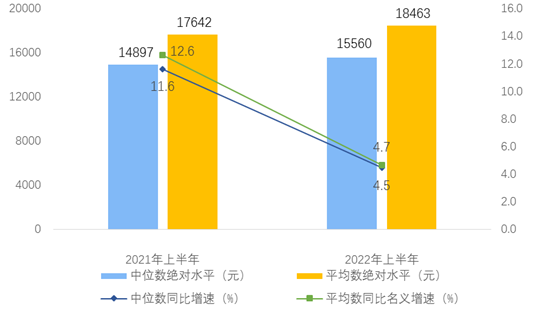 图1 2022年上半年居民人均可支配收入平均数与中位数
